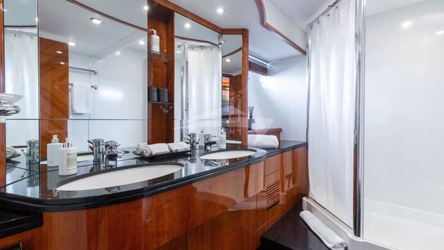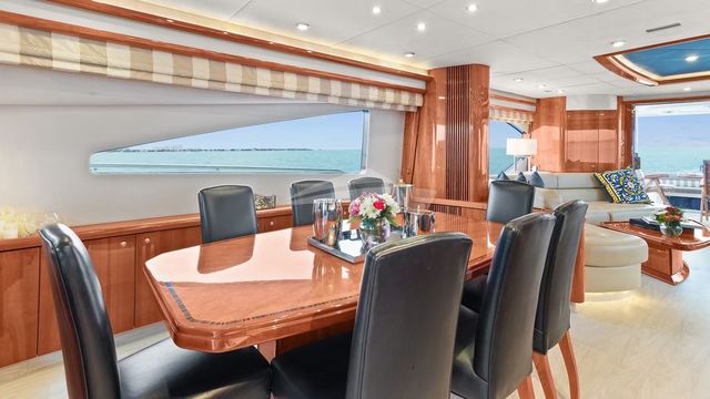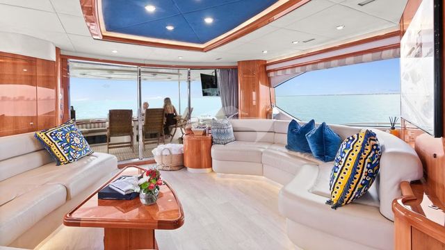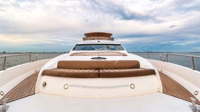 This Stunning 75 foot Azimut holds a Cabin that includes 3 bedrooms, 2 bathrooms & a kitchen. IIts very spacious & great for celebrations. The top floor is adjustable for DJs. It includes an ice cooler, Bluetooth speakers, & floating mat. You have the option to choose your destination Marine Stadium (Key Biscayne) or Monument Island (South Beach).